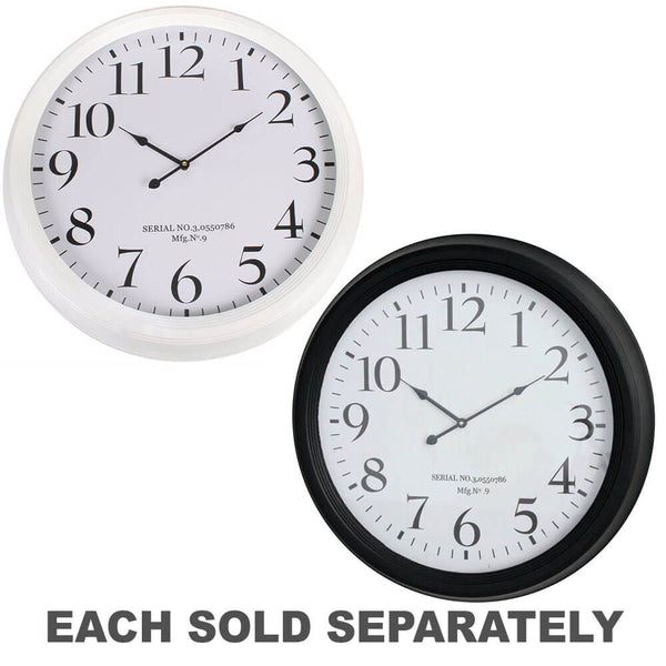 Italplast Plastic White Face & Black Trim Wall Clock (30cm)