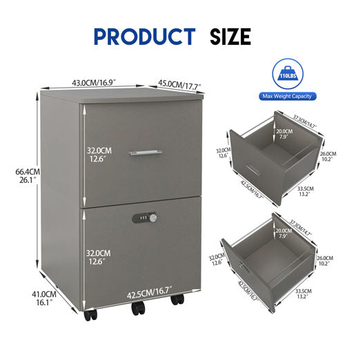 Organice sus archivos y mantenga los documentos importantes seguros con este archivador de archivos. Tiene 2 cajones que se pueden bloquear, proporcionando suficiente almacenamiento y mantienen sus archivos seguros. Los 2 cajones proporcionan suficiente espacio de almacenamiento para sus artículos pequeños. Cada cajón contiene dos carpetas de acción rápida. El cajón inferior con bloqueo sigue colgando archivos legales/de letra/A4 organizados y seguros y se extiende completamente para un fácil acceso. Este gabinete de almacenamiento de la oficina tiene un bloqueo combinado y una manija rayada, rieles deslizantes con 350 mm de largo Addams Double Base Rail. También puede moverse fácilmente, ya que puede rodar sobre 5 ruedas, este gabinete de almacenamiento de la oficina se puede mover y ajustar en su posición libremente. Este pequeño archivador se puede fijar al lado o debajo del escritorio, hecho de placa de partículas con grano de madera para la estabilidad y la estabilidad y la estabilidad. Fácil de limpieza