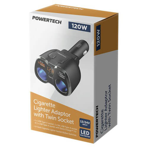 Esta unidad convierte el enchufe del encendedor de su automóvil en un enchufe doble para cigarrillos con 1 enchufe USB A de 2,4 amperios y 1 enchufe USB C y 1 enchufe de carga rápida USB A Qualcomm 3.0. La pantalla LED integrada también muestra el voltaje actual de la toma de cigarrillos a la que está conectado. Los interruptores incorporados le permiten encender o apagar individualmente las tomas de cigarrillos en el propio adaptador.