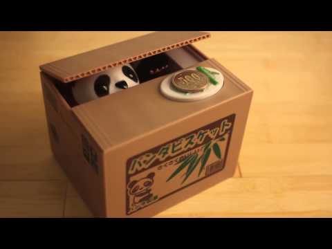 • Mientras la tapa está cerrada, coloque una moneda encima del plato blanco. ¡Mira cómo se abre la tapa para revelar al lindo panda pequeño que se asoma y luego agarra la moneda con su pata!