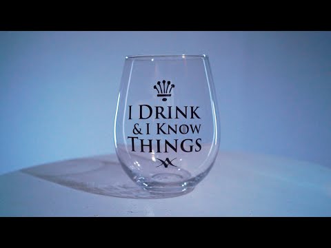 - La calcomanía negra dice "I Drink and I Know Things' con símbolos regios.