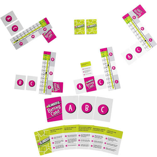 El juego tiene contenido divertido y no ofensivo que se puede identificar con los adultos para que puedas jugar con todos tus amigos y familiares adultos. El componente de apuestas estratégicas eleva las apuestas para los jugadores competitivos y mantiene a todos los jugadores involucrados en cada paso. Cada jugador tiene su propio cuadro de puntuación de apuestas utilizado para hacer sus apuestas. Lea la tarjeta de error y elija en secreto cómo reaccionaría. Otros jugadores apuestas sobre cómo creen que reaccionarías. Todos revelan sus respuestas. Los jugadores que adivinaron la respuesta correcta ganan los puntos que apusaron, pero aquellos que adivinaron pierden incorrectamente el número de puntos que se apostaron. La primera persona en alcanzar 100 puntos gana.