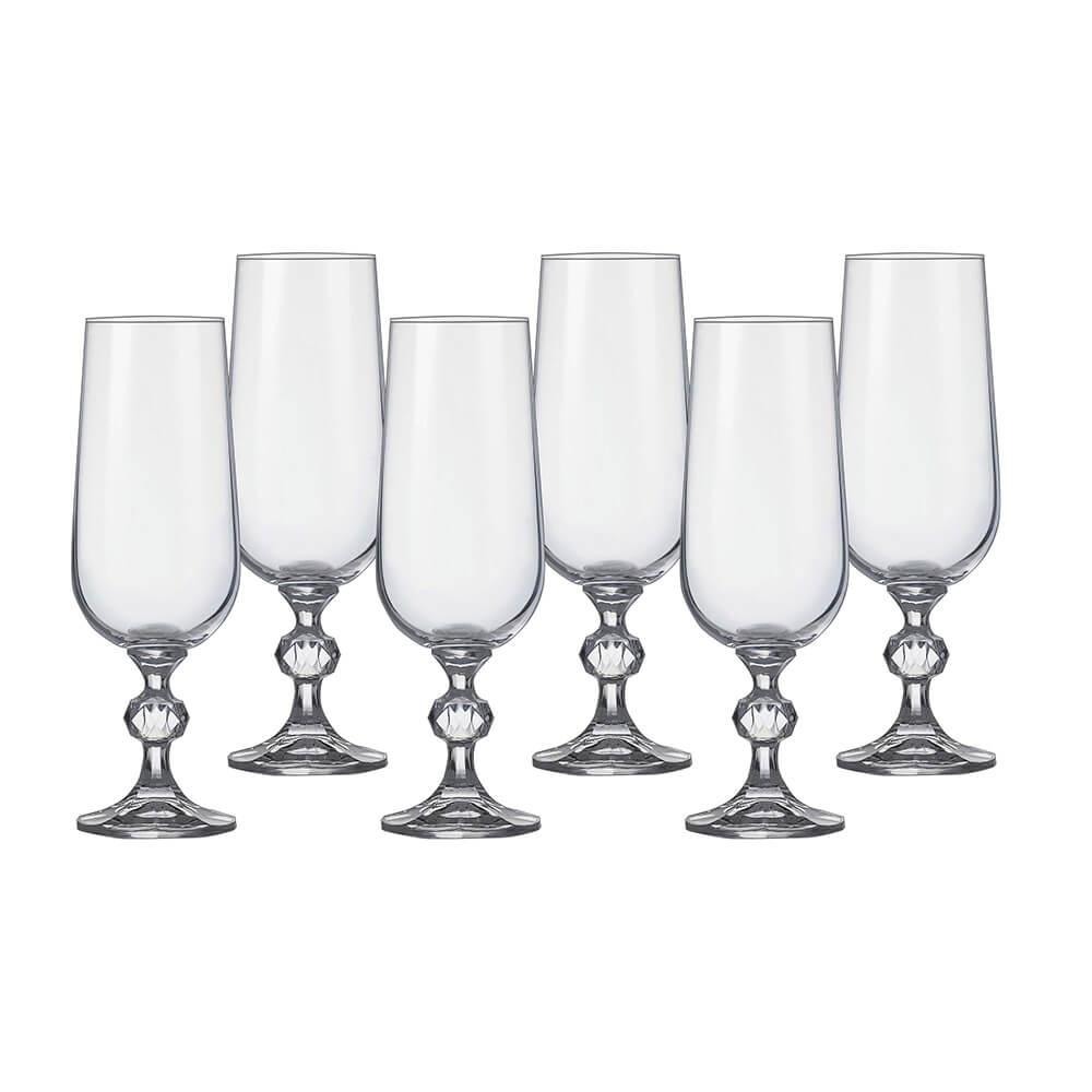La copa de champán Claudia tiene una copa alta y suave y un elegante diseño festivo realzado por un corte de "diamante" en el tallo. Es simplemente una dama elegante adecuada para ocasiones extraordinarias que serán llevadas a un nivel superior. El vaso está fabricado en cristal sin plomo. Aptas para el lavavajillas. El conjunto se puede combinar con otros productos de la colección Claudia.
