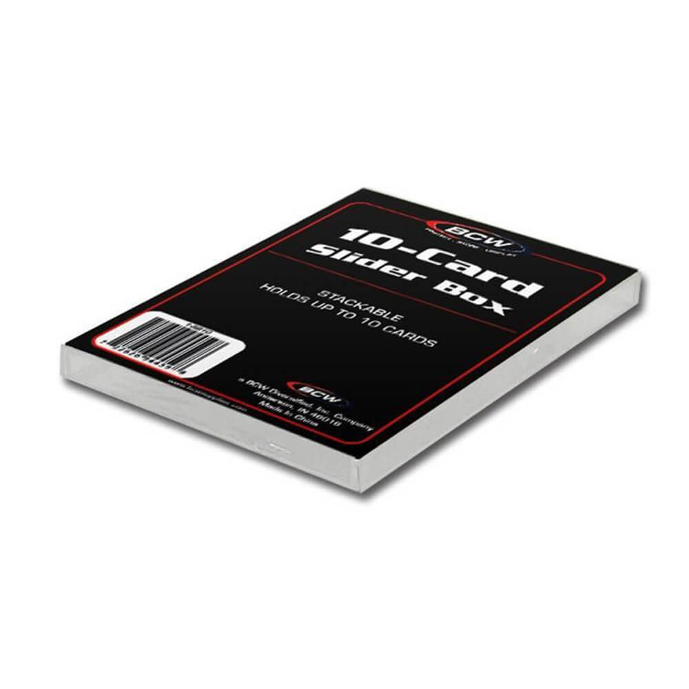 La caja deslizante de 2 piezas BCW está hecha de poliestireno transparente de alto impacto y presenta un diseño de ajuste por fricción. Utilice esta caja para almacenar, proteger y exhibir tarjetas coleccionables como: tarjetas de béisbol, tarjetas de baloncesto, tarjetas de fútbol, Magic The Gathering, Yu-Gi-Oh, Pokémon y otras.