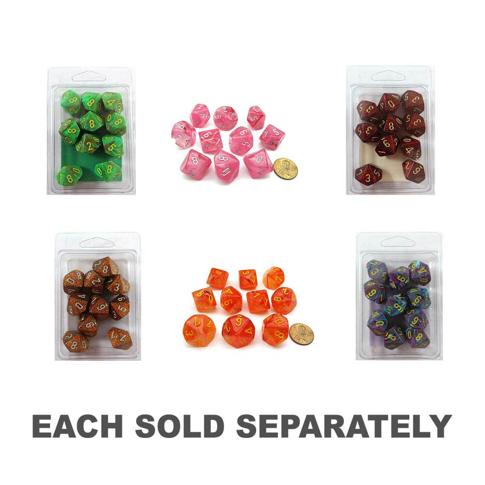 - Paquete de 10 dados Chessex Ghostly Glow D10 - Rosa con números plateados