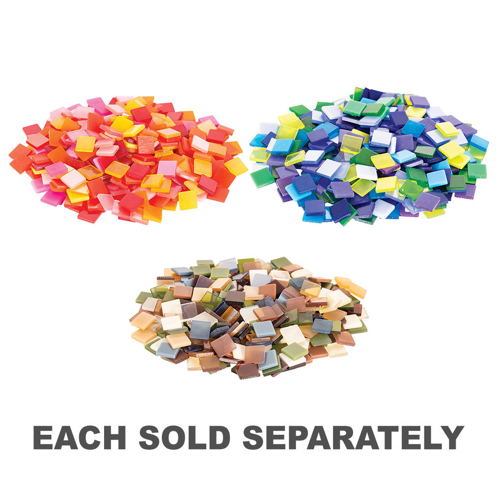 - This pack of Deco Mosaic Tiles includes a mix of warm colours (yellows, oranges, pinks, crimson and reds), in four surface finishes (opaque, frost, clear and glossy) which create glass-like effects.