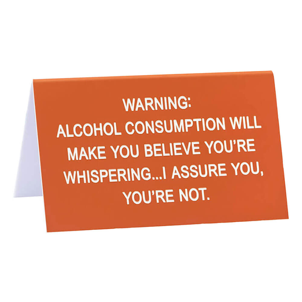 Rompe la monotonía del trabajo y traiga algunos LOL a la oficina con este ingenioso letrero de escritorio de decir qué. Leyenda dice: "ADVERTENCIA: El consumo de alcohol te hará creer que estás susurrando ... Te aseguro que no lo eres".