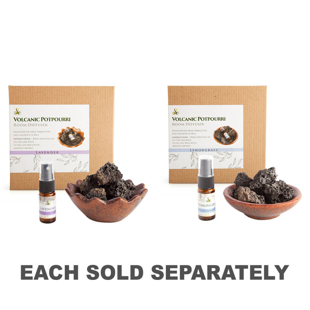 • Incluye cuenco de terracota, piedras volcánicas, bolsa negra con cordón y aceite esencial de hierba de limón.