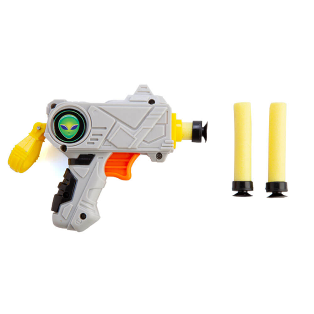 - Dispara a los dardos de espuma en los orbes con un impresionante blaster alienígena