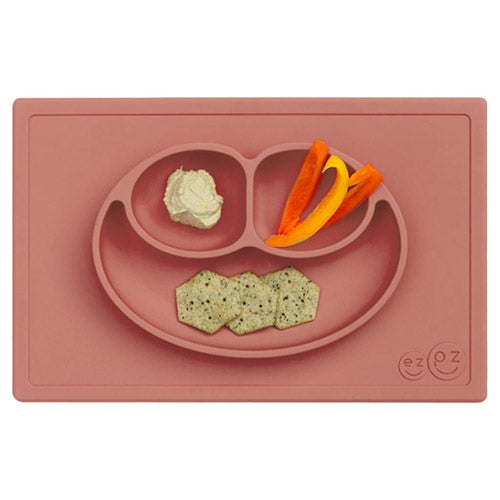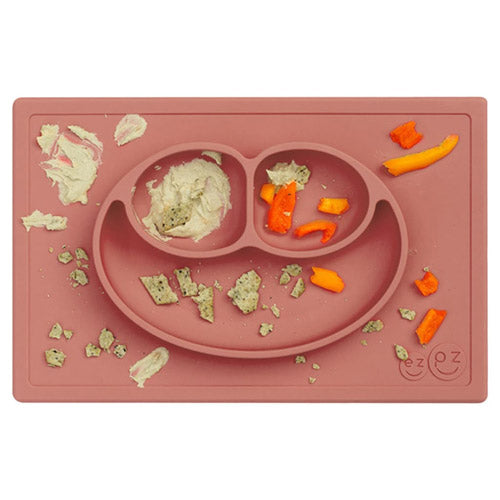 • Placemat lightly suctions to smooth surface tables and selected highchairs so no more tipped plates