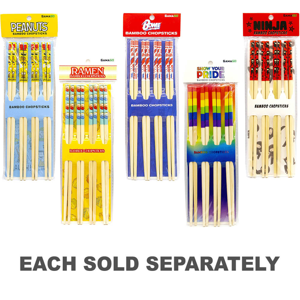 ¡Disfruta de tu plato de fideos favorito con estos adorables palillos de Gama-Go! Hechos de bambú 100% natural, estos palillos son reutilizables y cuentan con una superficie lisa para que sean fáciles de agarrar y perfectos para principiantes. Miden 23 cm de largo y cuentan con una multitud de deliciosos tazones de ramen esperando a ser devorados. Perfecto para sushi, sopa de fideos ramen, udon, tazones de arroz, shabu-shabu, pho, barbacoa coreana y mucho más. ¡Impresiona a tus amigos y familiares y consigue un paquete hoy!