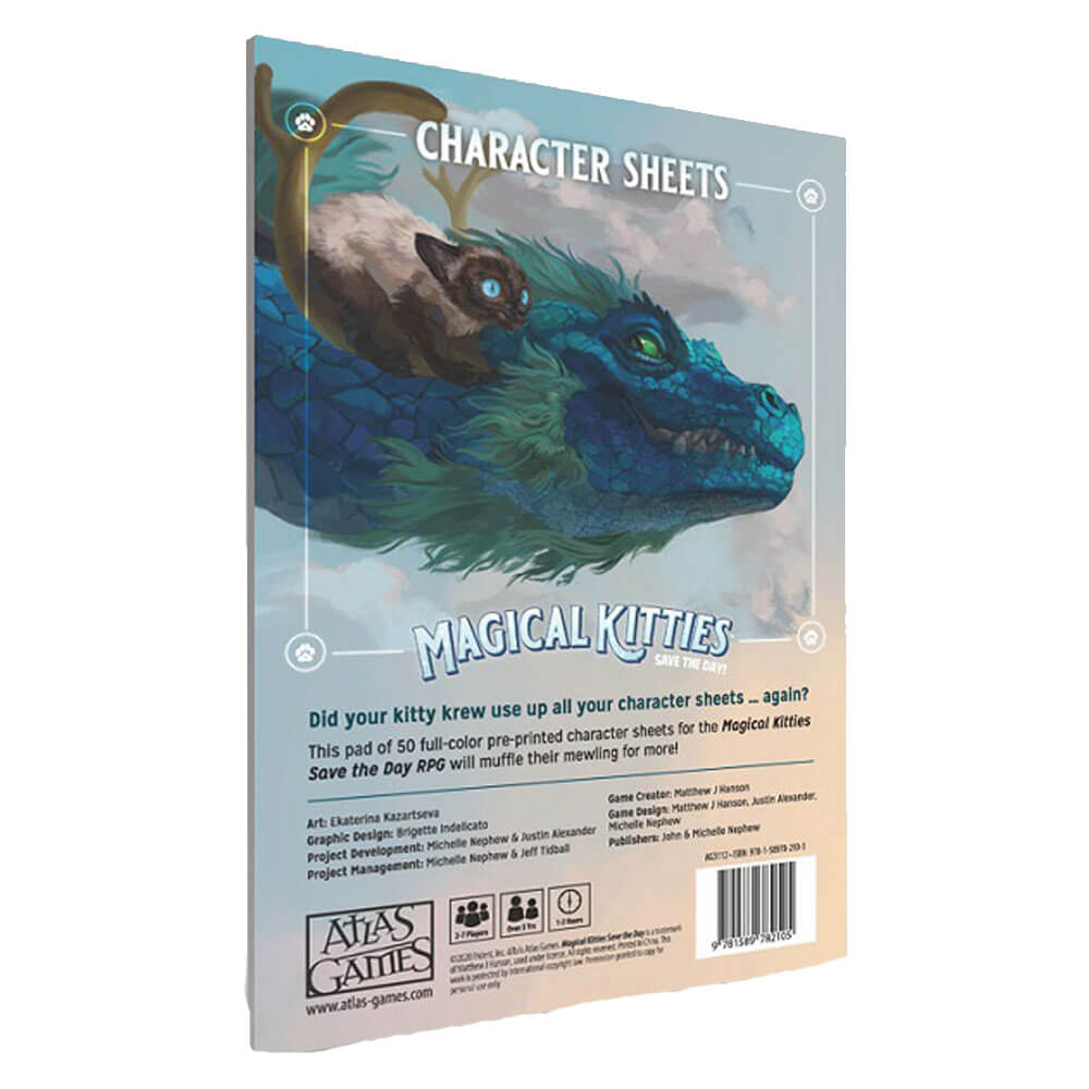 • Las hojas de personajes de doble cara y a todo color hacen que sea fácil rastrear las habilidades de su gatito.