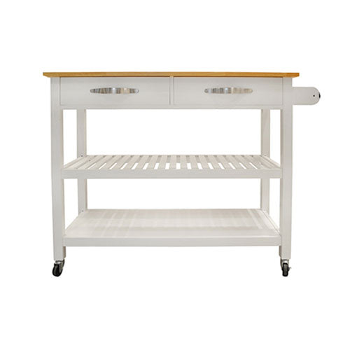 Esta isla de cocina cuenta con una elegante tapa de madera para mejorar su atractivo estético general. Es duradero durante los años venideros y es muy fácil de mantener. La isla de la cocina tiene 2 cajones de gran capacidad y dos capas de estantes abiertos, proporcionando suficiente espacio para almacenar suministros y colocar comida, vino, platos, etc. El lado derecho de la cocina Island está diseñada con una rejilla para toallas para colocar toallas. Equipado con ruedas rodantes suaves de 360 grados, el carrito puede moverse libremente y tiene un freno de bloqueo para una fácil posicionamiento. El carrito de la cocina tiene 4 ruedas de lanzadores incorporadas, lo que hace que sea súper simple moverse alrededor de la cocina o la casa. Además, 2 ruedas de lanzadores cuentan con un pestillo de seguridad incorporado para ayudar a mantener el carrito en su lugar durante la preparación de alimentos. El carrito de servicios públicos de almacenamiento sobre las ruedas se puede usar no solo en la cocina sino también en el comedor, el baño o la sala de estar . Está completo con todo el hardware y los accesorios necesarios y se proporciona la instrucción, que incluye pasos de instalación detallados.
