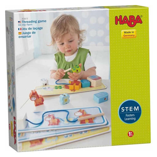 • El contenido incluye: 2 hilos con establo, 1 vaca, 1 ternero, 1 caballo , 1 potro, 1 hoja de trébol, 1 flor, 1 lechera, 1 herradura, 4 plantillas y 1 bolsita táctil.