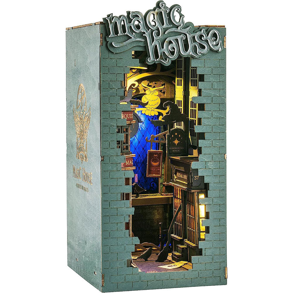 • Ensambla las piezas del rompecabezas para formar un sujetalibros funcional con iluminación LED.