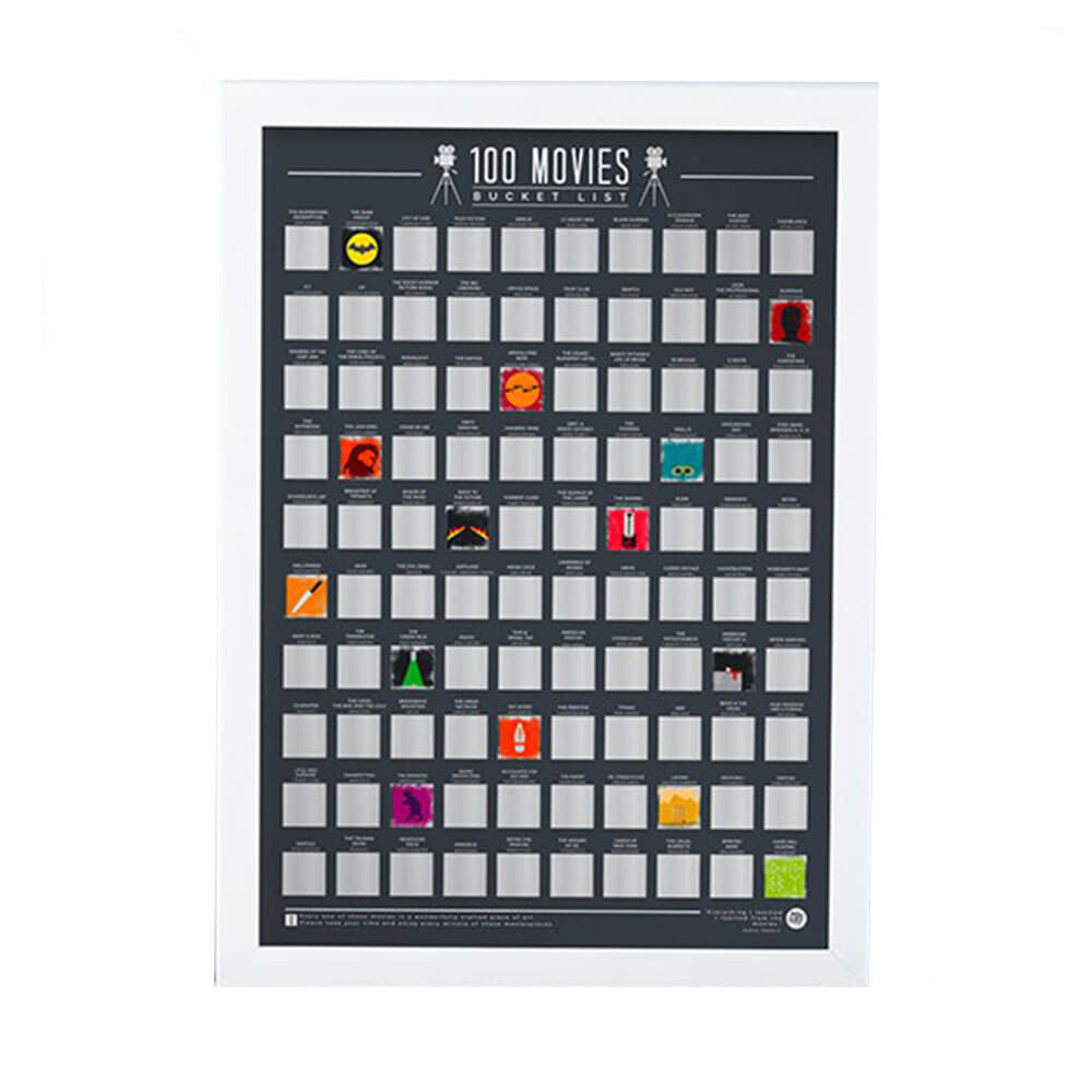 Este póster compila 100 de las mejores películas jamás hechas de todo el mundo. Este hermoso póster le permite rascar el título mientras mira la película, presentando una poderosa imagen relacionada con la película. Cuántos has visto?