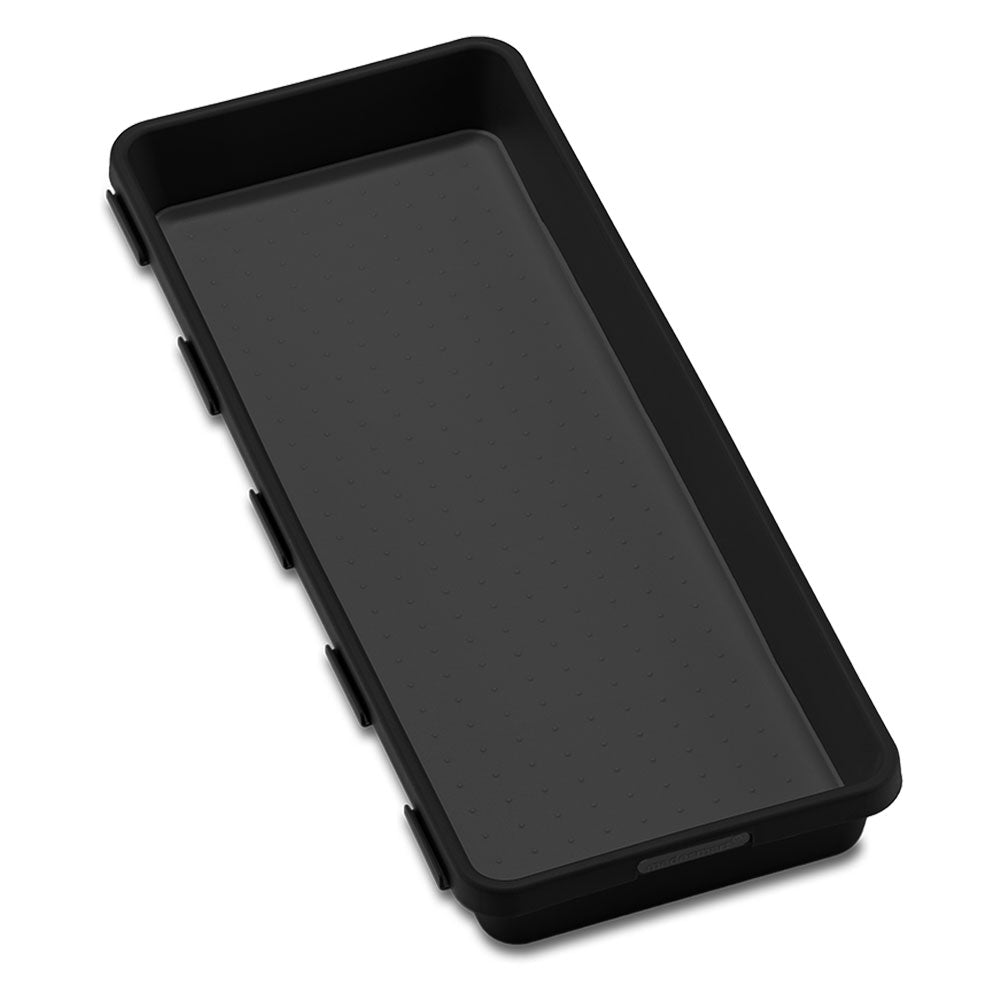 Su forro de agarre suave y sus pies de goma antideslizantes mantienen los artículos en su lugar. Este contenedor se puede bloquear con otros contenedores y bandejas de la colección clásica de Madesmart.