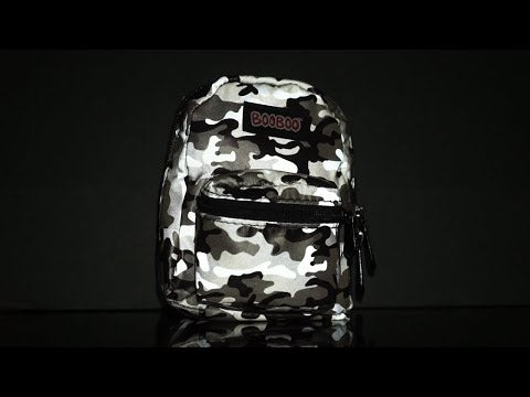 • Mini mochila BooBoo reflectante marrón camuflaje.
