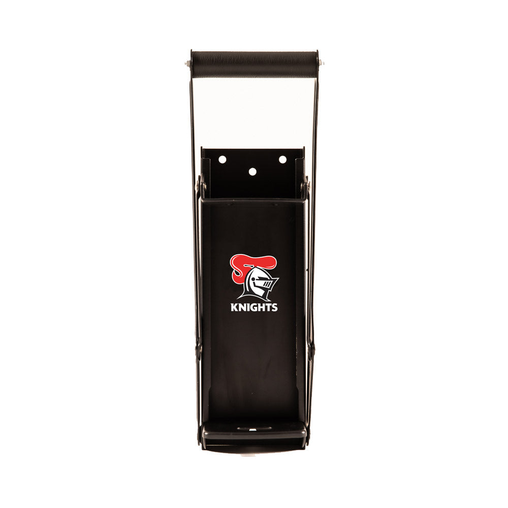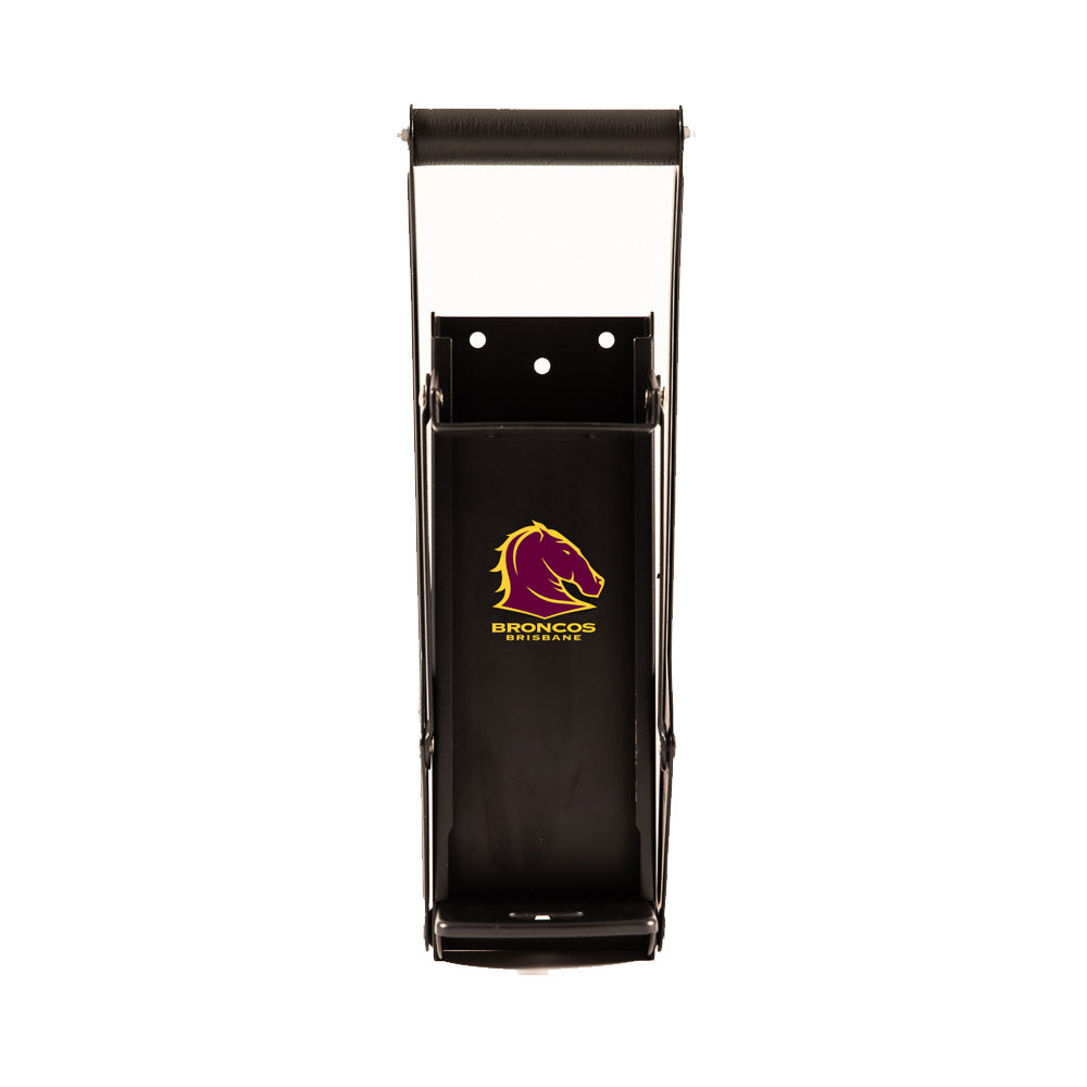 This heavy gauge steel can crusher is a product used for crushing aluminum cans for easier storage in recycling bins. It features a comfortable grip handle and includes a bottle cap opener on the base. Ensure you have a sustainable footprint, while supporting your favorite team!