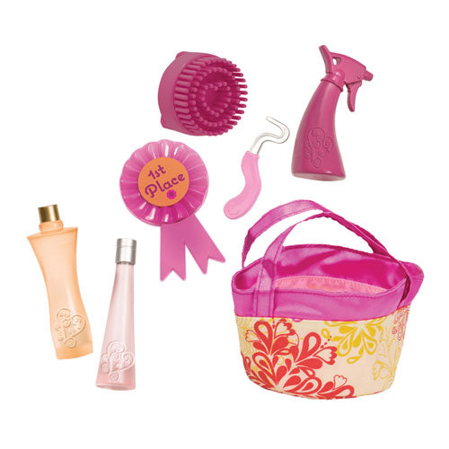 ¡Este adorable potro está listo para avanzar hacia la diversión! El potro Lipizzaner tiene una capa gris ligera y una melena y cola blanca sedosa que se puede cepillarse fácilmente. Cuando el clima sea frío, viste al potro Lipizzaner con su colorida manta rosa y naranja con corbatas con acabado satinado y un lindo arco. El cabestro está decorado con pequeños acentos de flores que coinciden con la manta para un estilo equino coordinado. Use el bolso de preparación de tela a juego para transportar las herramientas de preparación como el cepillo para curry, las botellas de rociado y la selección de cascos. Con mucho cuidado regular, su potro Lipizzaner seguramente se llevará a casa la primera cinta de lugar en cada competencia.