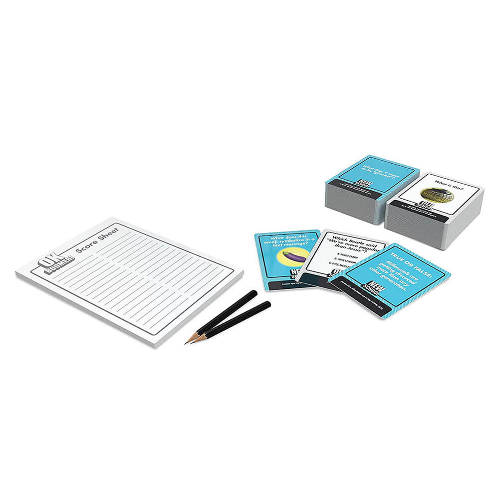 OK Boomer para juegos para adultos. ¿Estás fuera de contacto o tu juego de preguntas es fuerte? ¡Reúne a las generaciones en este divertido juego de fiesta en el que pondrás a prueba tu diferencia de edad! Separados en equipos: Old School vs New School. ¡Desde palabras de jerga hasta personajes de dibujos animados, New School adivina preguntas de trivia sobre la vieja escuela y viceversa! ¡Cualquiera que conozca más al equipo sobre el otro lado realmente se está despertando!