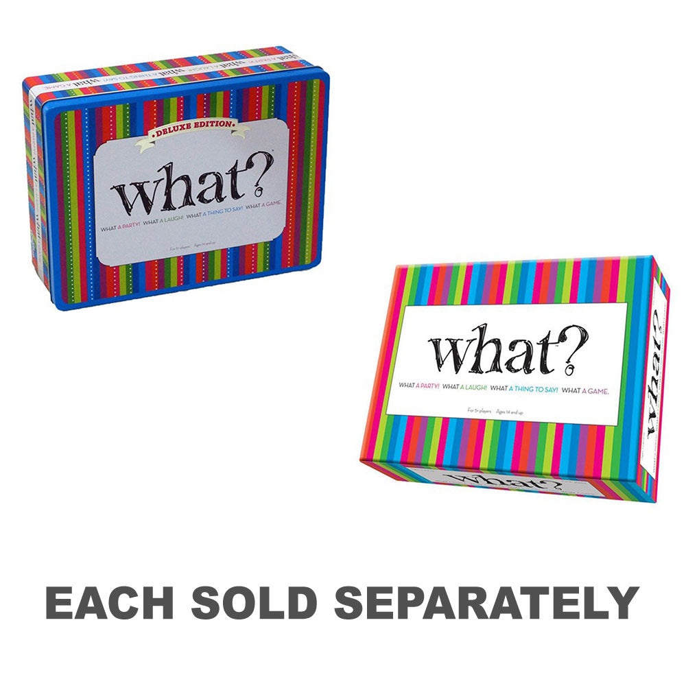 QUÉ es un divertido juego de fiesta de quién-dijo-qué. Se pide a los jugadores que escriban respuestas a preguntas y situaciones humorísticas, y todos deben adivinar quién escribió qué. No hay necesidad de ser sincero, no hay necesidad de ser de buen gusto, siéntete libre de ser tan tonto o divertido como quieras, la honestidad no es la mejor política en este juego. QUÉ es el juego perfecto para reuniones y fiestas. Debido a que los jugadores intentan adivinar el autor de una sola respuesta, el juego es muy rápido. Los jugadores pasan más tiempo con las cosas divertidas, escribiendo y leyendo sus respuestas. Con los jugadores intentando encontrar las respuestas más cómicas y escandalosas posibles, QUÉ. Es absolutamente la fama más divertida que jamás hayas jugado. El juego perfecto para reuniones y fiestas.