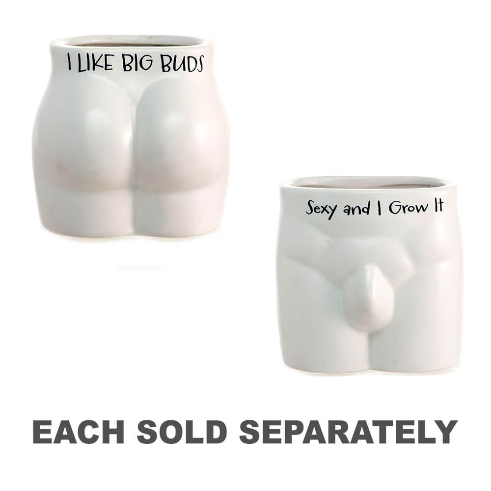 - Esta atrevida maceta tiene la forma de la anatomía femenina y, con un impresionante texto gráfico que dice "Me gustan los cogollos grandes", ¡esta divertida maceta es un gran regalo único para amigos en su cumpleaños! Perfecta como accesorio de escritorio o como tema de conversación tonto en la casa. ¡Esta maceta es una manera fabulosa de agregar un poco de diversión a tu follaje!