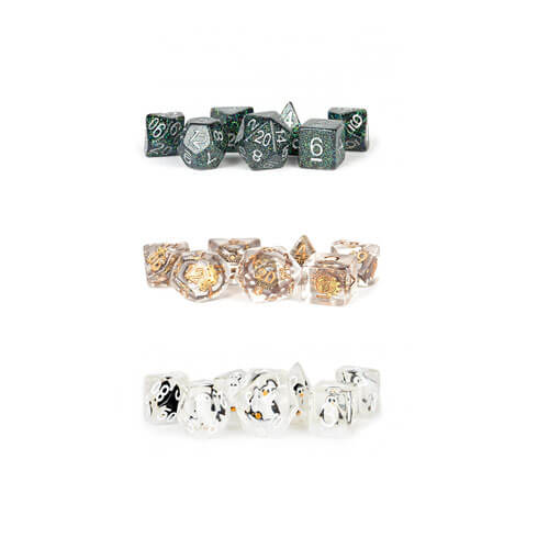 • Los dados de resina MDG tienen inclusiones únicas que añaden brillo a cualquier mesa de juego.
