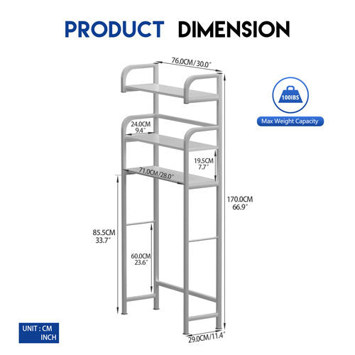 Este estante de tres niveles proporciona almacenamiento adicional para aprovechar el espacio no utilizado o en el mostrador en el baño, como toallas y varios elementos esenciales del baño. La rejilla de almacenamiento sobre el inodoro es un buen ayudante para evitar los autrudas, lo que le brinda un baño limpio y ordenado. Este organizador de ahorro de espacio es una excelente solución de almacenamiento para cuando el baño y la sala de lavandería son pequeños pero necesitan una gran capacidad de almacenamiento. Hace una buena coincidencia en el contador de trineo que requiere un almacenamiento espacial extendido con surtición con tubos de acero a prueba de óxido y a prueba de óxido, un marco de acero admite sin esfuerzo lo que almacene, le ofrece una organización a largo plazo y estable, y es menos propenso Para doblar o sesgar durante el transporte o el organizador de inodoro Usethis tiene un diseño de 3 capas, cada uno de los cuales puede contener hasta 30 kg. Por lo tanto, tiene mucho espacio para organizar los artículos necesarios, como toallas, detergentes y más