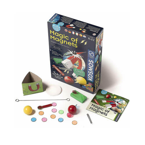 Kit científico de la Magia de los Imanes del Támesis y el Kosmos. Diviértete y aprende experimentando con fuerzas invisibles. Aprenda a construir una brújula y dónde están los polos magnéticos. Con juegos magnéticos adicionales. Ocho experimentos diferentes que cubren temas para ayudar a nuestros científicos en ciernes a comprender mejor el concepto de magnetismo. ¿Por qué algunos objetos metálicos son atraídos por los imanes, pero no todos? ¿Cómo puede “magnetizarse” el hierro? ¿Cómo utilizan las aves migratorias el campo magnético de la Tierra en sus migraciones anuales? El aprendizaje se logra mediante la experimentación y la aplicación de los principios aprendidos en algunos juegos simples. Magic of Magnets está en la misma serie Fun Science que Mysterious World of Crystals.