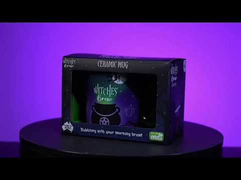 Bebe tu poción favorita de esta taza mágica. Taza de cerámica con un caldero de brujas contra un cielo nocturno espeluznante. Lavar únicamente a mano, no apto para microondas ni lavavajillas.