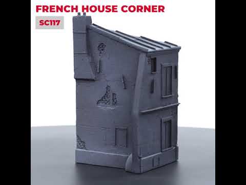 - Una esquina completa de una casa de campo de estilo europeo, basada en el diseño de un pueblo francés, textura detallada, ideal para un diorama con vehículos y figuras a 1/72.