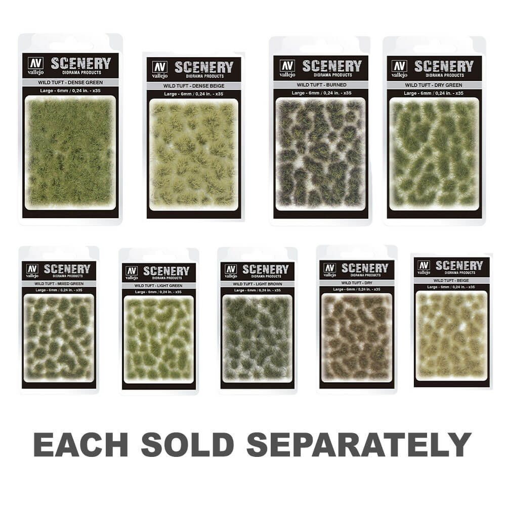 Vallejo Scenery es una gama de mechones en miniatura que ayuda a complementar tus escenas añadiendo mayor realismo a la representación en tus maquetas, figuras, terrenos de wargame o dioramas históricos.