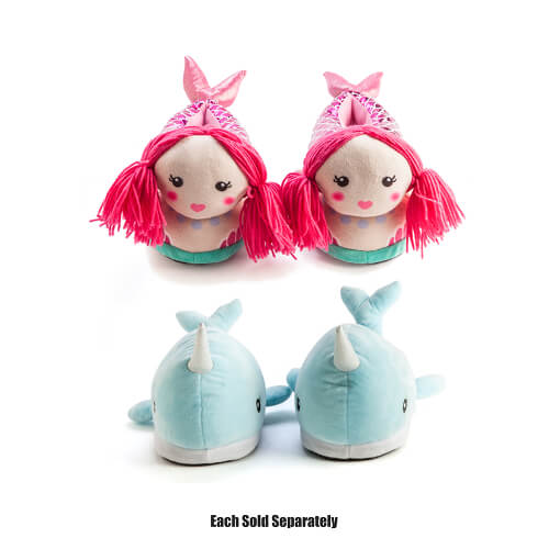 ¡Será recibido por un par de sirenas o narvales cada noche cuando regrese a casa! ¡Estas lindas pantuflas con personajes están hechas de terciopelo suave y afelpado y son muy divertidas de usar! ¡Será otra razón más por la que te alegrará cruzar la puerta de tu casa por la noche!