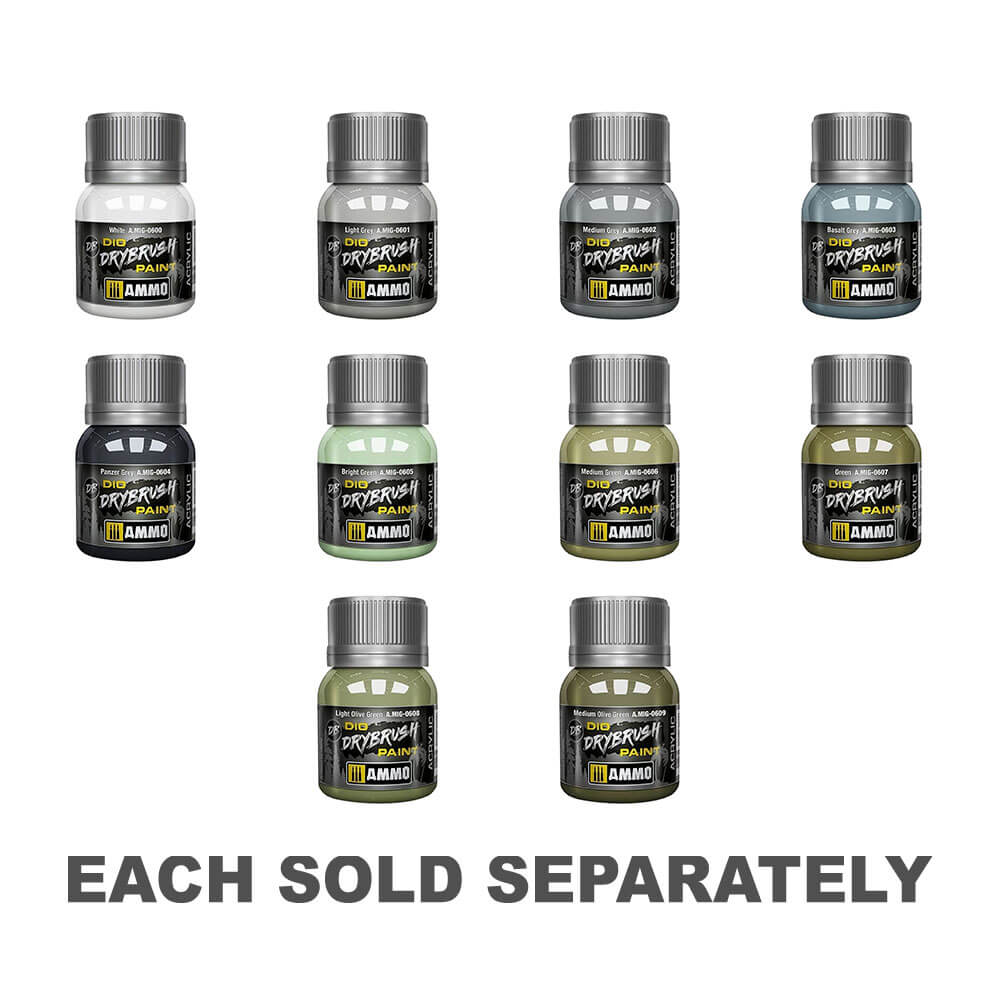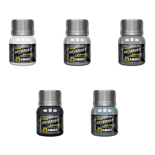AMMO has designed a new paint formula specifically for drybrushing with the ideal density and specific characteristics that make it the best type of paint for this technique. The new DIO DRY BRUSH is the perfect solution for all those modellers who love this iconic technique, arguably one of the simplest and most effective weathering techniques. Simply use a brush of any size, load it with paint, dry it to the touch by rubbing it on a piece of paper towel or a cloth to remove the excess, and then apply it by gently rubbing onto the details of your model to create a smooth, uniform texture.