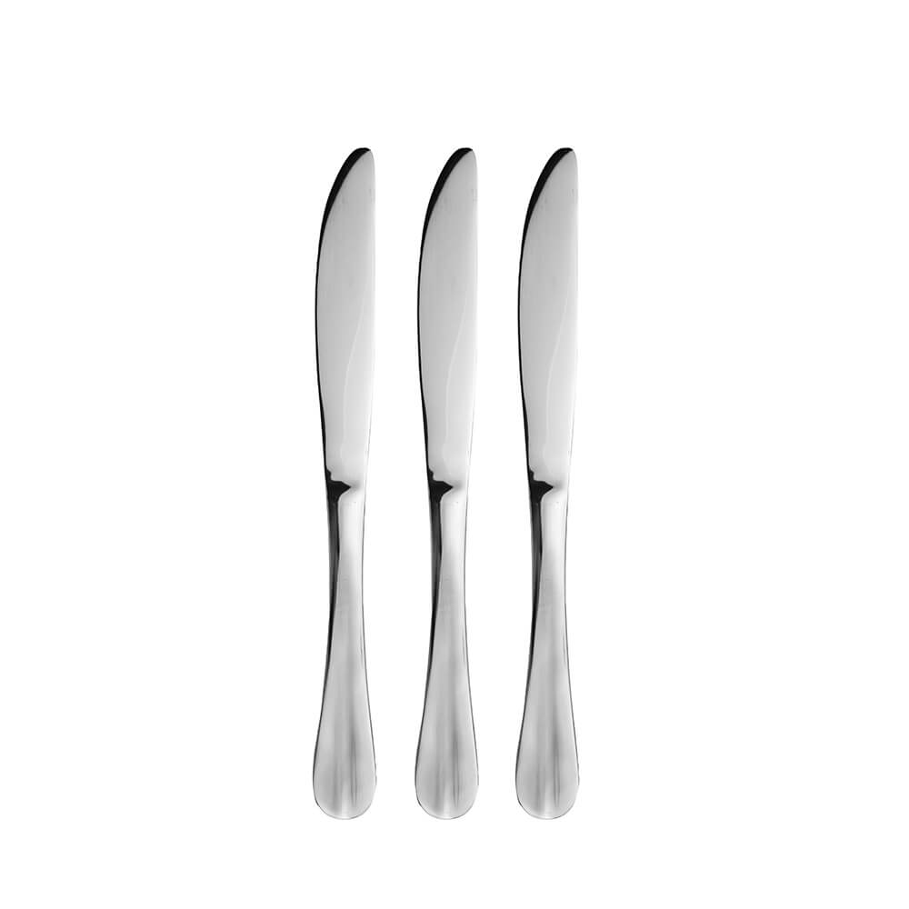 Set of 3 Avanti Heritage Table Knives, classic and elegant design finished in durable stainless steel. The Avanti Heritage Cutlery Collection with its simple and classic pattern is designed to complement any table setting. Perfect and durable for everyday use, this flatware is made from quality stainless steel and features well-balanced handles with a sleek vertical line for a timelessly elegant look.