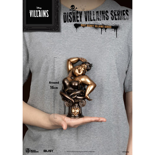 The sculptures are designed in a stone sculpture style, featuring the classic Roman column features as the base for the bust. Each character's unique exclusive pattern is depicted on the base, representing their darkest skills and thoughts from the animation. The "Disney Villain Series" includes 5 classic characters: