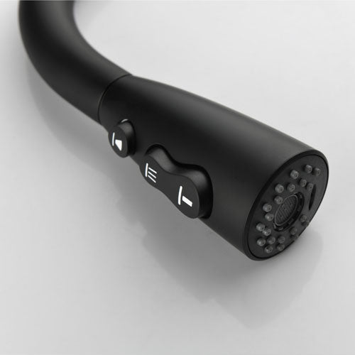 Crafted with a touch of modern elegance, this black kitchen faucet with a pull-down sprayer is the perfect upgrade for your culinary haven. Its sleek matte black finish adds a touch of sophistication, while the high-quality copper construction ensures lasting durability and resilience against everyday wear and tear.The pull-down sprayer extends effortlessly, providing superior reach for rinsing dishes, pots, and even hard-to-reach corners of your sink. No more struggling to maneuver bulky pots under a fixed spout!The single-handle design allows for smooth, one-handed control of water flow and temperature. Adjusting water pressure and temperature becomes a breeze, simplifying your kitchen tasks.