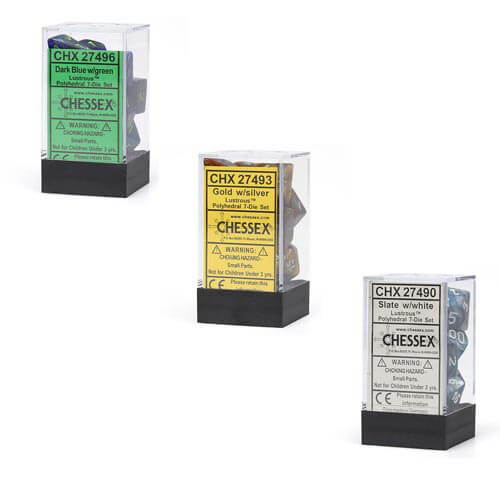 Signature dice are a compilation of the best selling colors of new dice released in the past few years. It includes a wide variety of colors and materials, but each is a unique and interesting addition to any dice collection. This set contains one d20, one d12, two d10 (00-90 and 0-9), one d8, one d6, and one d4.