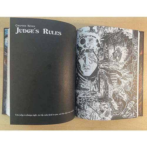 Glory & Gold Won by Sorcery & Sword. You’re no hero. You’re an adventurer: a reaver, a cutpurse, a heathen-slayer, a tight-lipped warlock guarding long-dead secrets. You seek gold and glory, winning it with sword and spell, caked in the blood and filth of the weak, the dark, the demons, and the vanquished. There are treasures to be won deep underneath, and you shall have them. Return to the glory days of fantasy with the Dungeon Crawl Classics Role-Playing Game. Adventure as 1974 intended you to, with modern rules grounded in the origins of sword & sorcery. Fast play, cryptic secrets, and a mysterious past await you: turn the page.