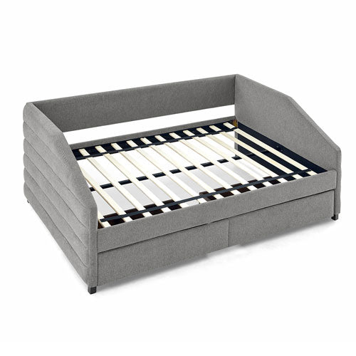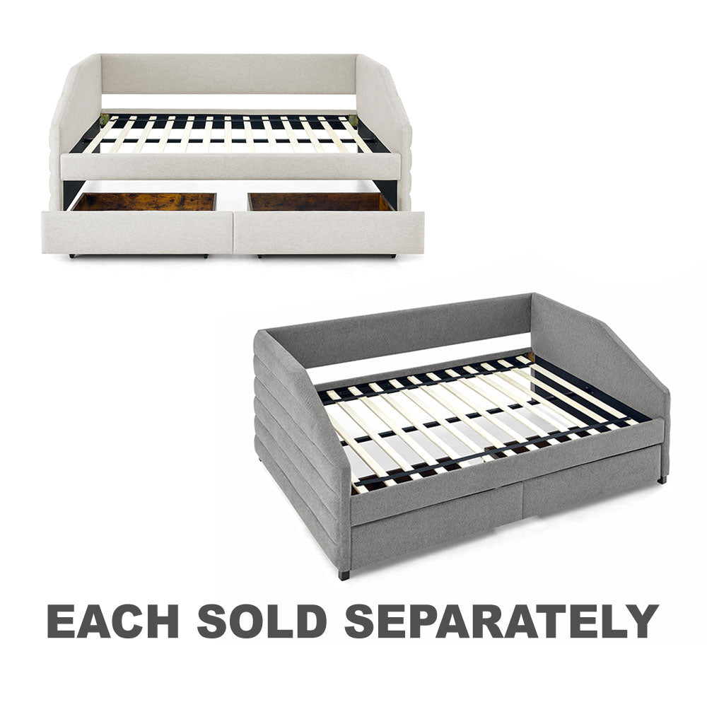This sofa bed features convenient pull-out drawers and is designed with clean silhouettes and elegant tones. It brings a modern and timeless style to any room.This stylish single bed comes with two drawers to save you space. With no cumbersome box springs, the space under the lower bunk bed gives you extra storage space and focus on your drawers on wheels.A sofa bed takes up minimal space for spontaneous overnight guests. Even better, a pair of drawers provides storage underneath for extra clothes, blankets, and other bedtime essentials.The sofa bed frame is made of MDF and plywood, providing dense and sturdy support. The construction ensures a lifetime of service, and the sturdy frame and backrest won't wobble.It is complete with all the needed accessories and the instruction is provided, which includes very detailed and concise installation steps, and it will take you only a little bit of time to assemble.