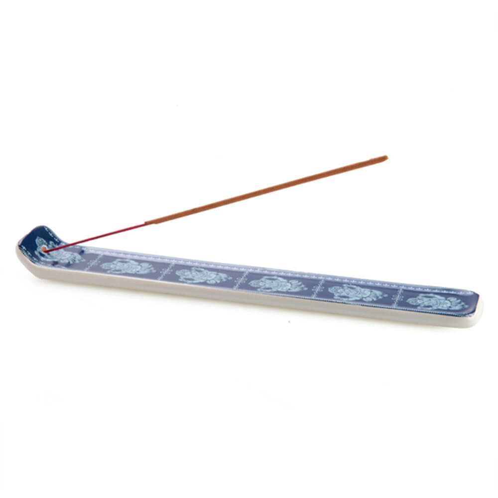 White and blue incense burner featuring the Hindu deity, Ganesha. Made from quality ceramic