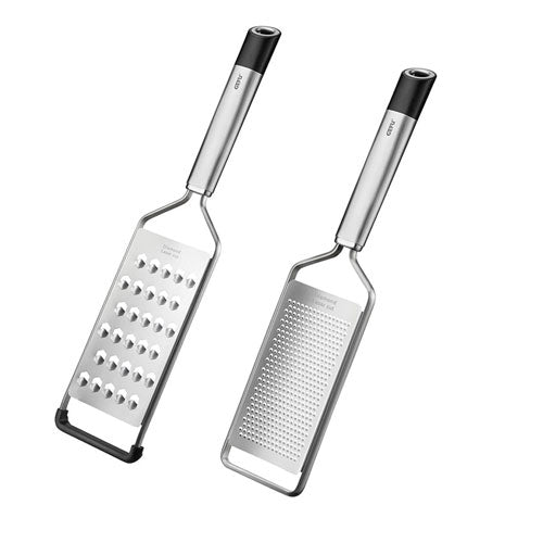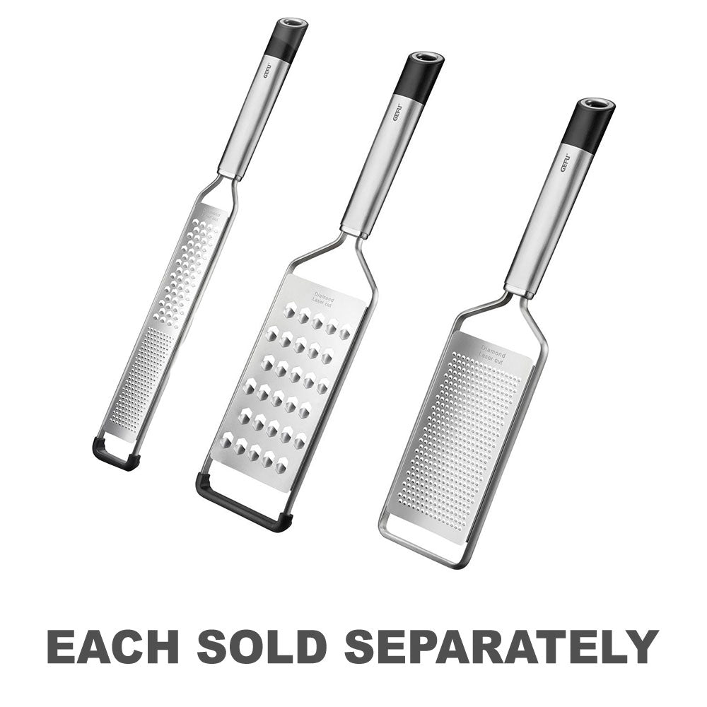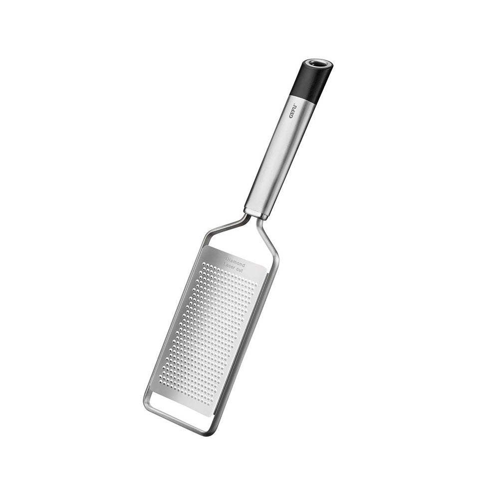 GEFU Primeline Coarse Grater delivers crunchy ingredients for raw-vegetable salads, dips and delicious, fried grated potato and vegetables. Made of high-grade stainless steel material with ABS plastic handle. Handle with ergonomic design provide perfect grip to hold and pleasantly balanced weight for effortless work. Features extremely sharp laser-cut blades, concave grating surfaces for safe work, protective cap and anti-slip foot. Everything can be grated directly and comfortably into bowls and pots.