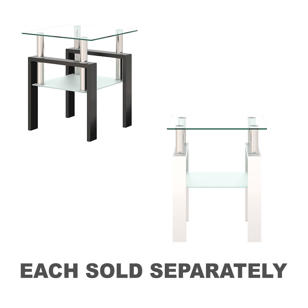 With its sleek and minimalist design, the Modern Square Coffee Table is perfect for various settings, making it an ideal addition to your living room, bedroom, or any other space. This square table adds a touch of refinement to any room decor.The Glass End Table is made with a combination of tempered glass and metal legs, ensuring durability and stability. The thick tempered glass top provides a chic and elegant look, while the thick frosted tempered glass bottom adds a touch of sophistication to any space.If you're looking for a convenient and time-saving option for your coffee table, this Glass End Table is a great choice. The glass table is exceptionally easy to maintain, requiring just a quick wipe to keep it clean and looking new.The Glass End Table not only provides a unique and stylish look but also offers a durable and sturdy surface to place your belongings. The tempered glass top is resistant to scratches and is built to withstand daily use.It comes with all the necessary