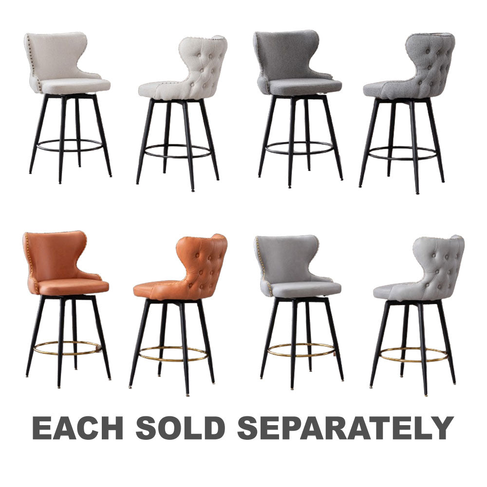 Combining a contemporary backrest and graceful simple lines on the outside of the chair. Finished in a gold accent, this dining chair set will easily enhance your dining space with a classic feel.This accent chair is really comfortable thanks to its fabric and foam-padded seat and back. It allows you to rest for a perfect moment of relaxation.The base of the corner chair is constructed of metal legs with gold spikes that are sturdy and stable enough. In addition, the gliders are useful to protect the floor from scratches.The kitchen chair has a perfect shape to fit any environment in your home. It can be used in the dining room, kitchen, living room, bedroom, living room, as a tea/reading corner chair, or as a dressing table chair.It is complete with all the needed hardware and accessories and the instruction is provided, which includes very detailed and concise installation steps, and it will take you only a little bit of time to assemble.