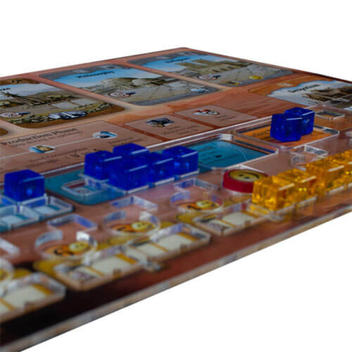 Wander through the Ages and make sure, your cubes and workes are have a firm ground. Our overlay designed to fit the new edition from Czech Games will make sure, that all cubes stay in place. It will fit inside our Through The Ages Organizer.