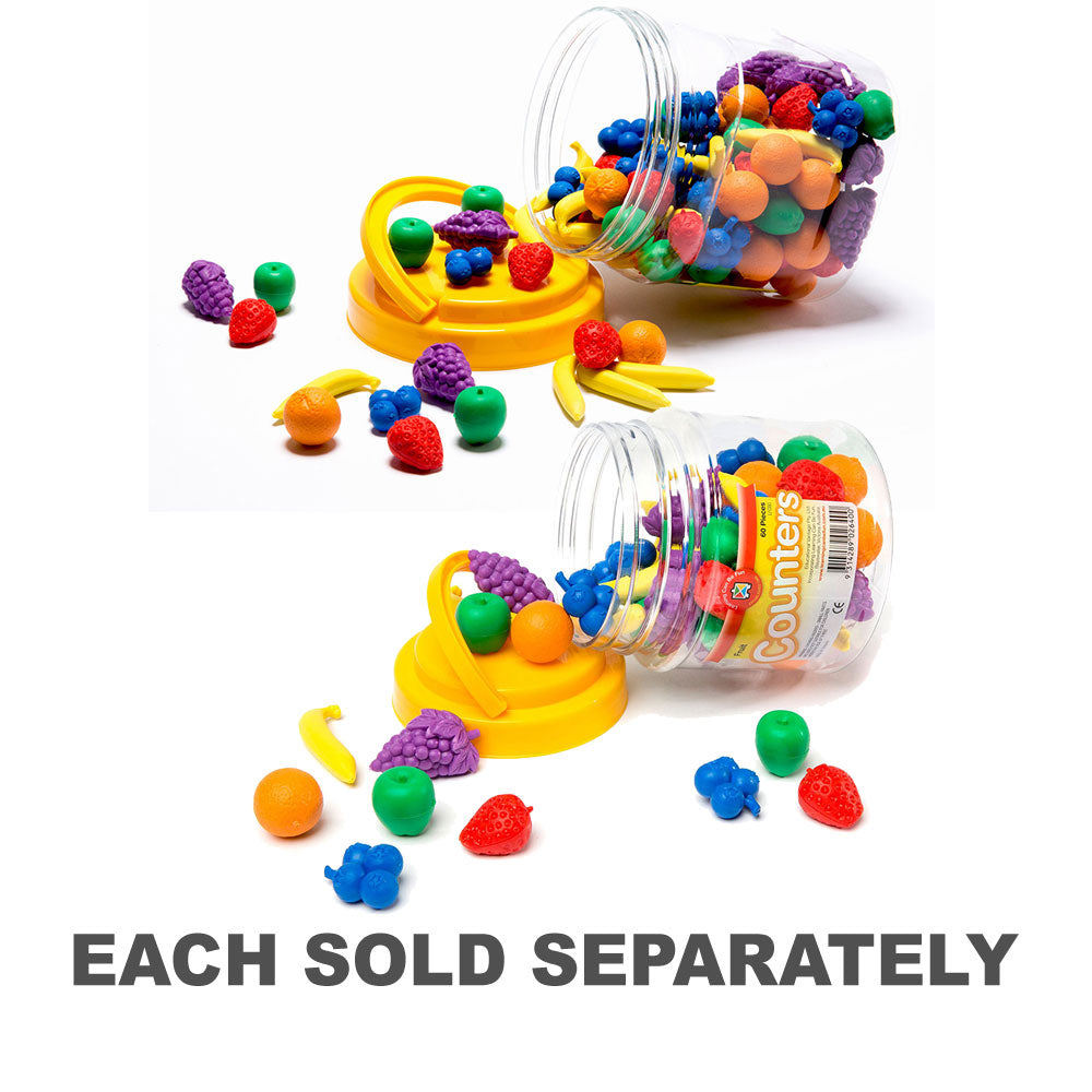 The Counters Fruit Jar is an engaging educational tool that combines the colourful world of fruits with essential mathematical concepts. This set includes 108 pieces, showcasing 6 unique fruit shapes in six vibrant colours.