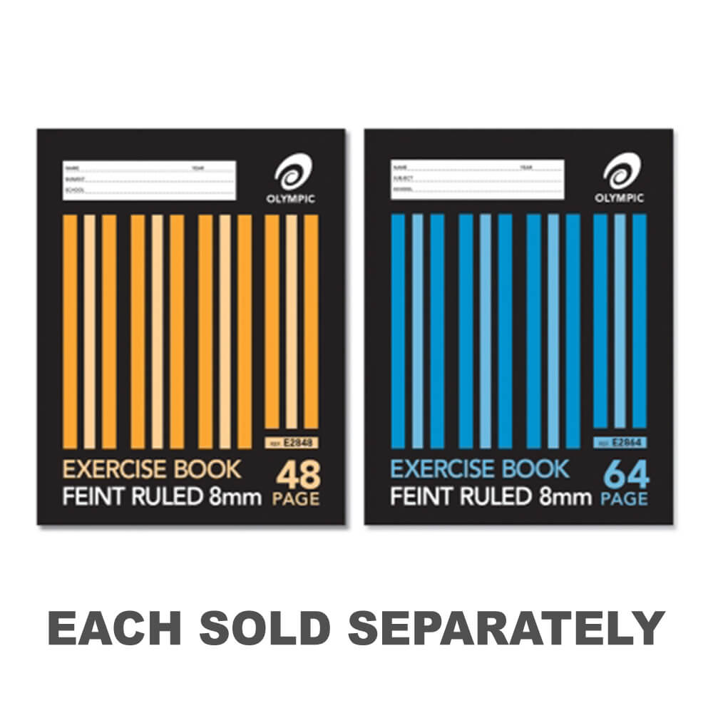 Olympic Stripe 225 x 175mm Exercise books. Bright white paper feint ruled 8mm.