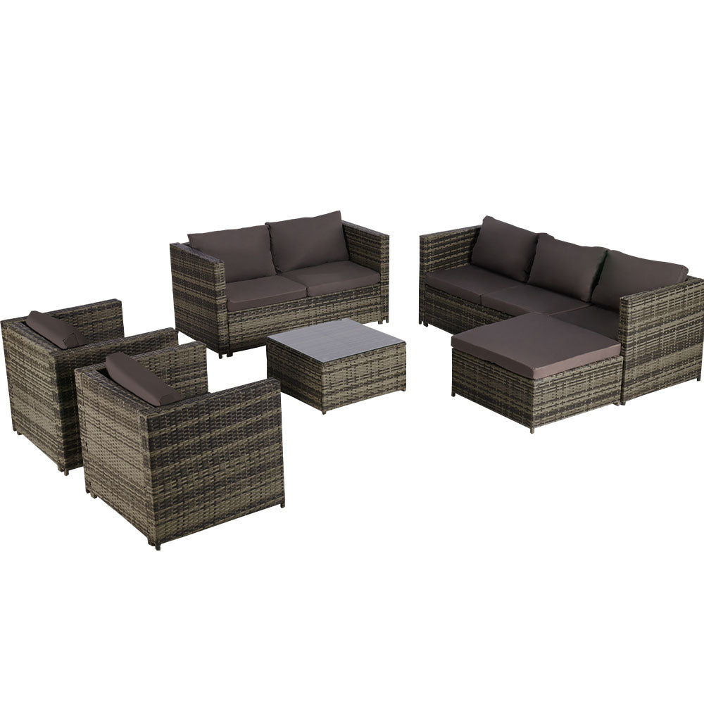 This elegant and functional set is made to enhance your outdoor living space, providing a perfect setting for entertaining guests or simply enjoying a peaceful meal amidst nature's beauty.Crafted with meticulous attention to detail, this furniture set showcases a sturdy and durable rattan construction. The handwoven rattan material adds a touch of natural elegance to your outdoor space while ensuring exceptional durability and resistance to the elements. This set is built to withstand outdoor conditions, making it perfect for your garden, patio, or any outdoor gathering area.The set includes a spacious table with a weather-resistant glass top, providing a convenient and stylish surface for dining or hosting. The glass top is easy to clean and adds a touch of sophistication to the overall design.The accompanying chairs feature comfortable seating with plush cushions, providing a cozy and relaxing experience