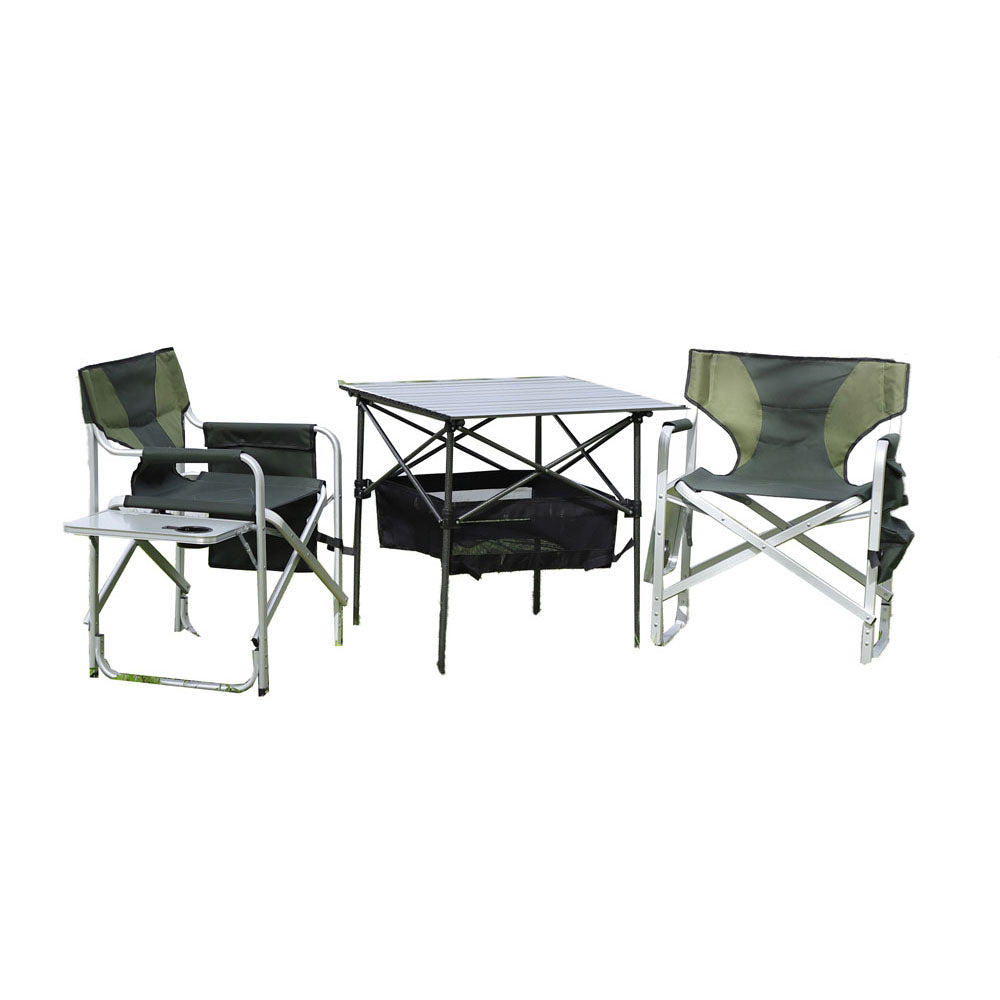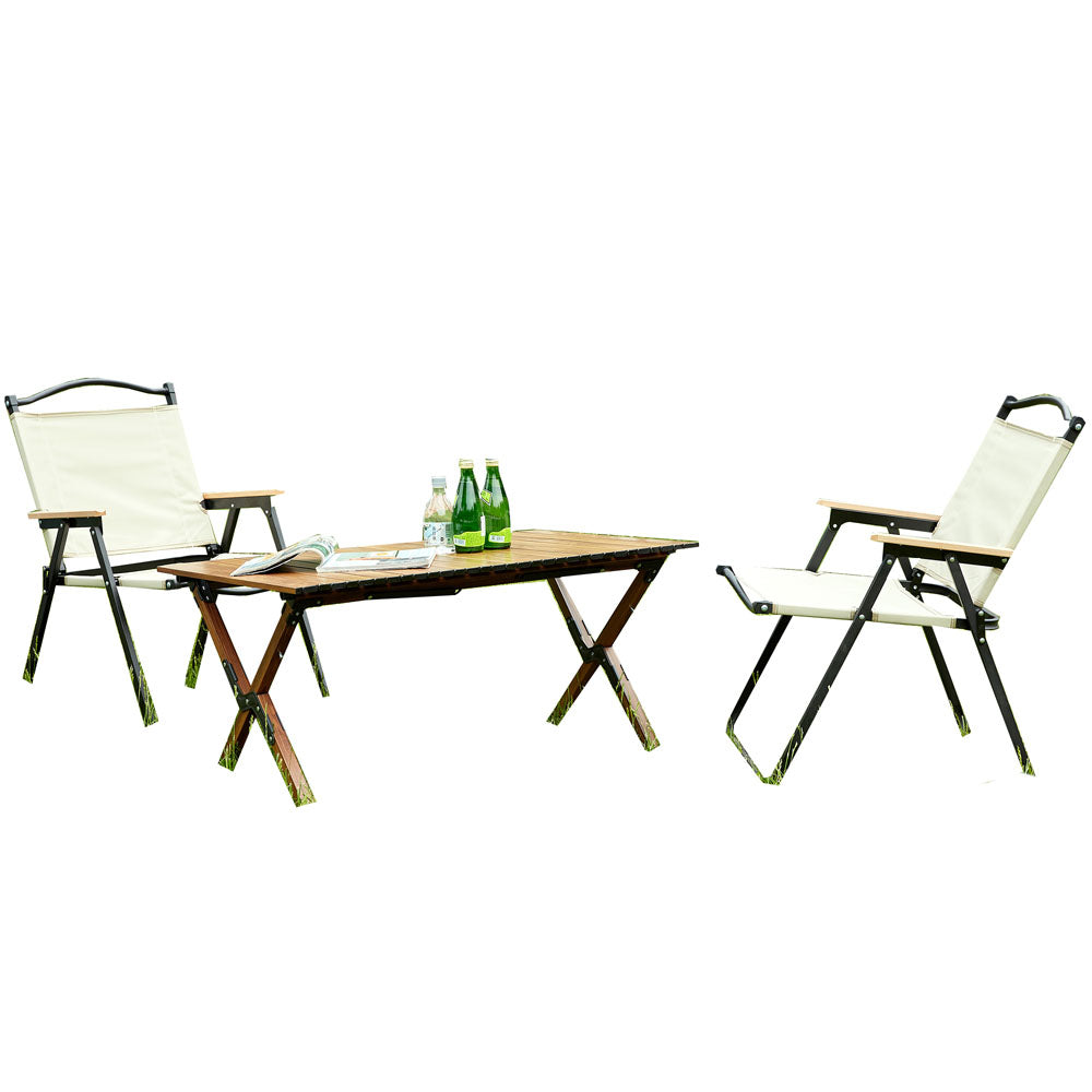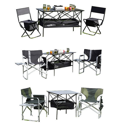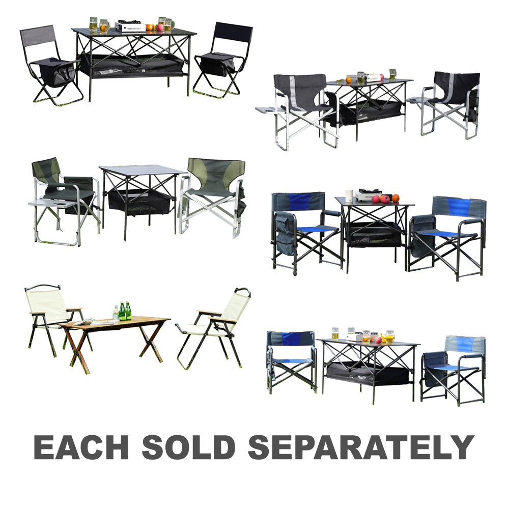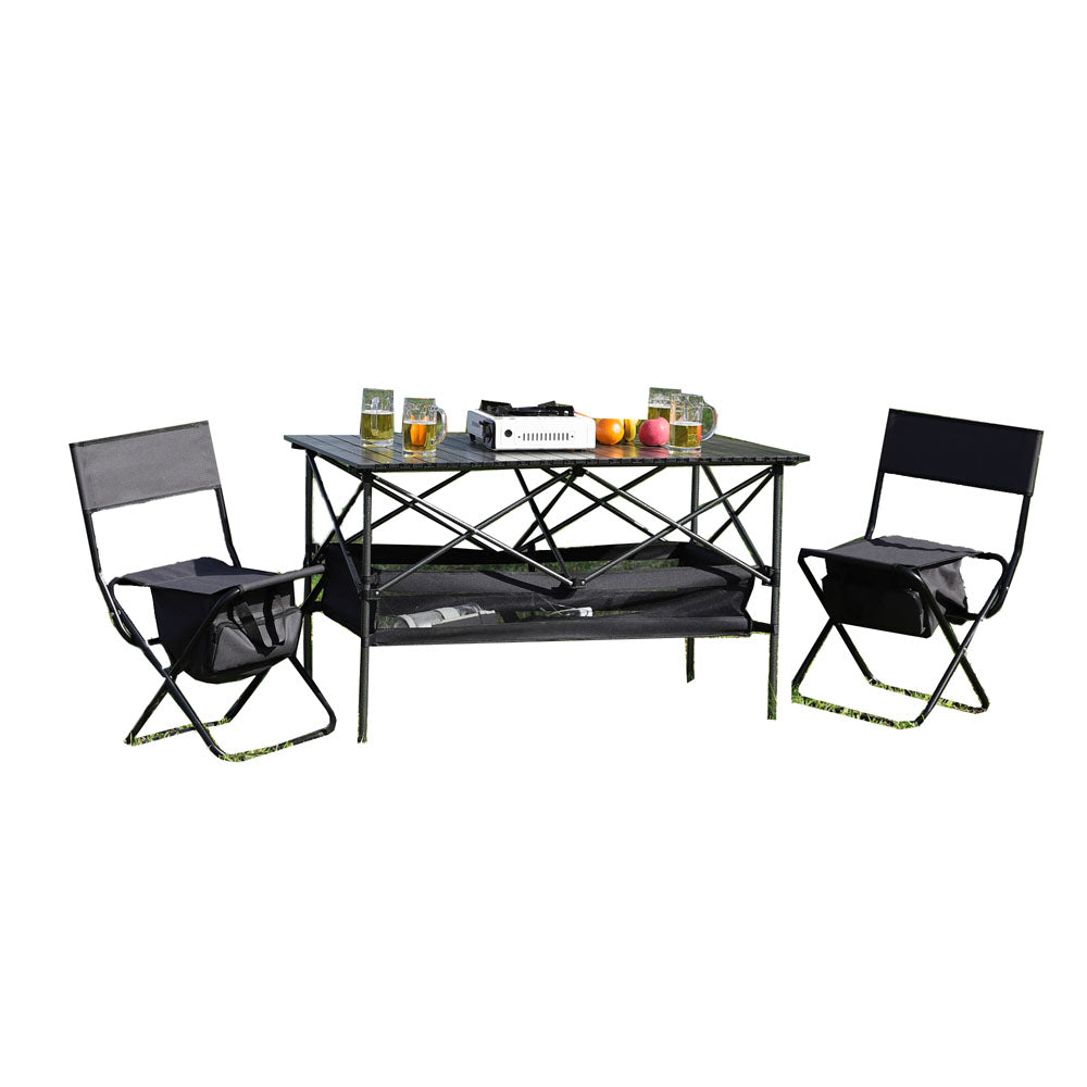 The portable chair and table set are a great choice for anyone looking for a comfortable and sturdy chair for indoor, and outdoor activities such as camping, picnics, and fishing.The convenient storage bag underneath the chair-top is a unique feature that makes it easy to store small items such as garden tools, toys, and mobile phones.It has anti-slip feet that are a useful addition to prevent the chair from sliding or tipping over, which could be important for individuals with balance or mobility concerns.The camping chair and table set is made of high-quality steel pipe, making it lightweight and easy to carry, while also providing excellent support for up to 280lbs.The chair's fabric is made of durable materials that can withstand the elements, ensuring that it will last for many outdoor activities to come.No installation is required. The chairs and table can be easily folded down, making it easy to transport to and from your destination.